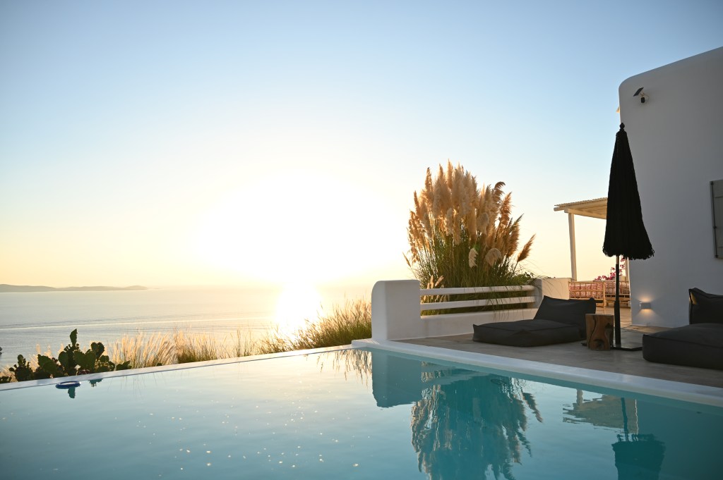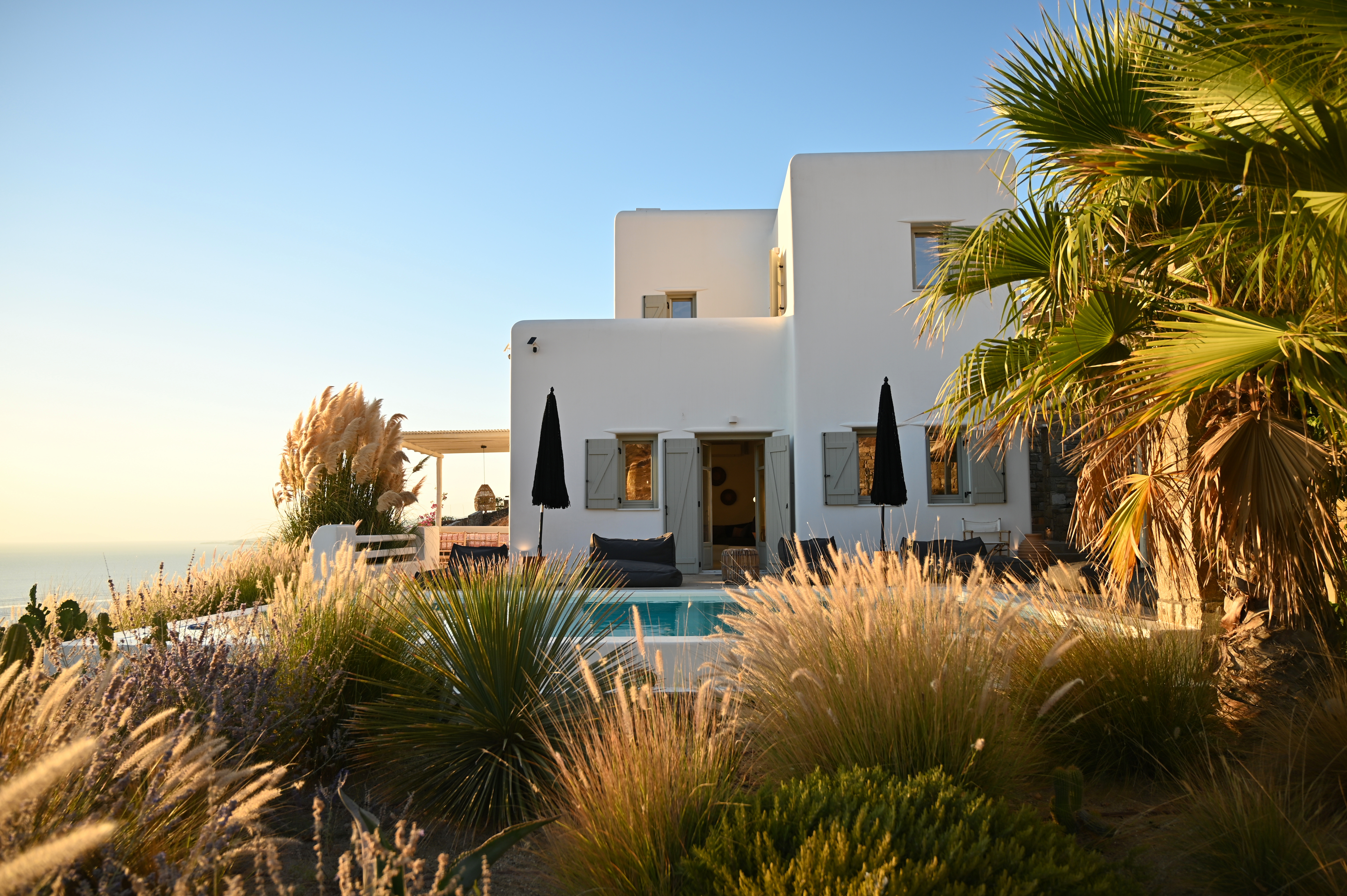 A serene retreat on Mykonos with modern comforts, breathtaking sea views, and stunning sunsets. Perfect for those seeking absolute privacy and relaxation, yet just a short distance from Mykonos Town.